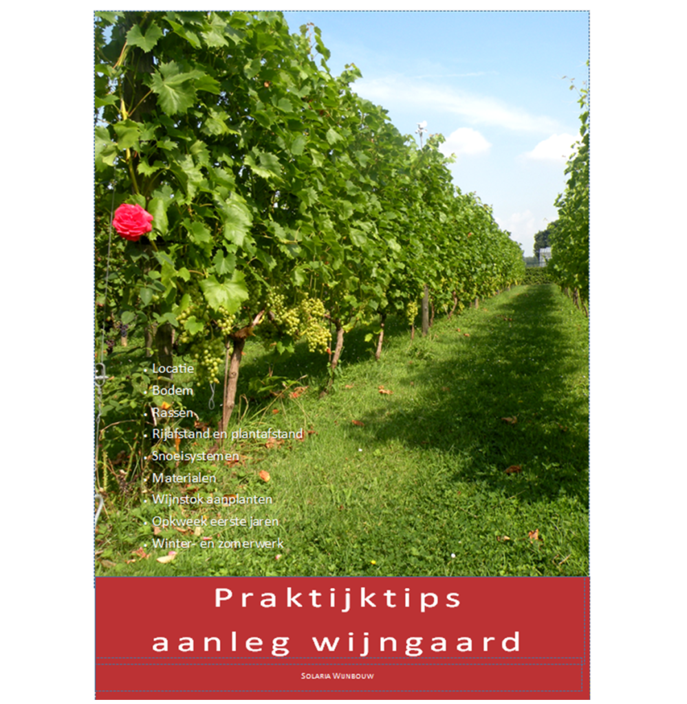 Een magazine over alle praktische zaken die spelen bij de aanleg van een wijngaard zoals locatie, bodem, rijrichting en plantafstand, rassenkeuze, cordon of guyot, opkweek jonge plant, zachte snoei etc.