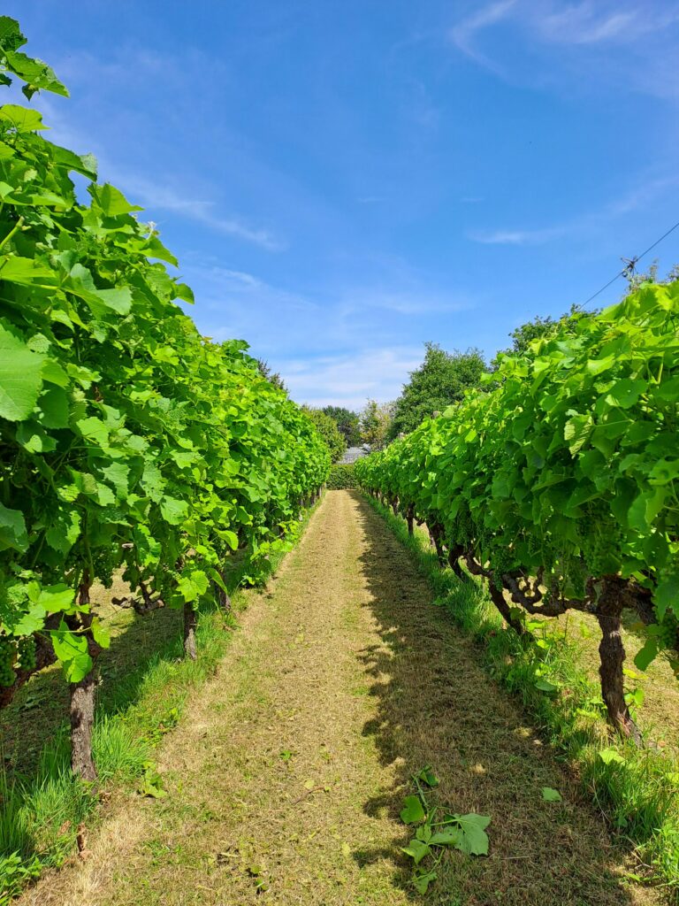 Dit jaar hebben we in onze wijngaard een experiment opgezet om het suikergehalte in de solaris al tijdens de rijping te beïnvloeden. Bij één enkele rij wordt de loofwand extra laag gehouden, circa 30 – 40 cm lager dan bij de andere rijen. De blad/vruchtverhouding wordt zo negatief beïnvloed en dit zal terug te zien zijn in de suikeropbouw. Ben benieuwd wat hier uitkomt. We blijven het volgen en berichten.